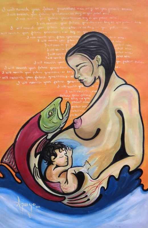 And that is precisely what is so extraordinary about salmon, and why they are, in Levi Strauss’ terms, not just got to eat, but “good to think.” They are good to think about the profound mysteries of reproduction, not just biologically but in terms of the inter-generational transmission of wisdom and consciousness, the inner landscape that Apay’uq’s Our Agreement takes us into. Returning again and again from its thousands-mile journeys across the Pacific, Salmon provides its human cousins with a model for what we all owe to future generations whom we will never see. Salmon undergo the most remarkable series of bodily transformations, moving from being freshwater to saltwater beings, and then, when finally swimming back upriver, forgoing all food and consuming their flesh in their undivided mission towards spawning the next generation. We need Sockeye and other anadromous species for so many reasons, not least of which are the ways in which they remind us of the necessity for metamorphosis, for tireless, fully-directed efforts towards a future, for reproducing a universe that is so much vaster than any one individual self. Whether the scale of that commitment be externally macrocsomic, as for Zaria Forman, or keyed to an intimate inner world as for Apay’uq, that is the common mission of the artist, who in Paul Klee’s famous terms, does not simply show what is visible, but instead “makes visible.” Through the artist we see with new eyes, and that is the gift the artists give to Titus at the onset of the film, and the gift which he, swimming with salmon upstream against all odds, gives back to all of us.