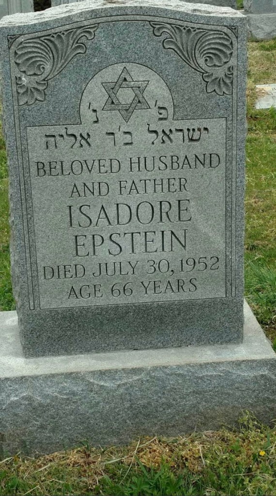 Like many members of my family, I have been rather uncertain about the early life and background of my mother’s father, Isadore Epstein, who was evidently born 17 April 1886 or 1887 and who died 30 July 1952 in Philadelphia, PA.