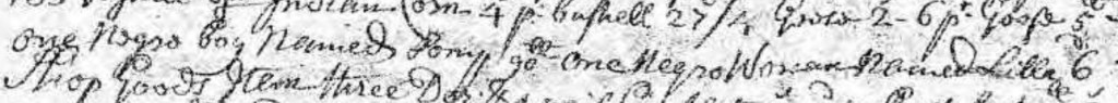 In turn, the 29 Aug 1734 inventory of the estate of the son of Samuel Wolcott Sr, Samuel Wolcott, Jr. lists two slaves, one negro boy named Tony? valued at 90 pounds, and one negro woman name Lillie? , 6 pounds.